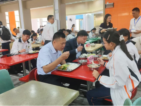 隨后,洪武松副縣長一行到學(xué)校飯?zhí)脤嵉夭炜词巢膬Υ妗⒓庸さ裙芾砹鞒?,與學(xué)生共同排隊取餐、就餐,親切交流了解其日常飲食偏好以及對學(xué)校食堂飯菜的評價,鼓勵學(xué)生積極反饋意見。洪武松副縣長強(qiáng)調(diào),學(xué)校要嚴(yán)把食品“質(zhì)量關(guān)”,完善“日管控、周排查、月調(diào)度”機(jī)制,落實校長陪餐制度,強(qiáng)化“校園餐”全鏈條監(jiān)管,確保學(xué)生“舌尖上的安全”。