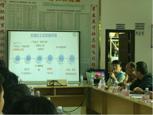 觀摩結(jié)束后,交流活動如期舉行,本次活動由洋青鎮(zhèn)副鎮(zhèn)長、社工站站長陳濤泉主持,遂溪縣委組織部人才組羅軒組長為此次活動致辭。羅組長充分肯定了廣東省兜底民生服務(wù)社會工作服務(wù)站在基層治理中發(fā)揮的積極作用,并強調(diào)要以黨建引領(lǐng)人才隊伍建設(shè),持續(xù)優(yōu)化社工人才發(fā)展環(huán)境,推動專業(yè)服務(wù)向村(社區(qū))延伸。他指出,社工站是夯實基層民生保障、提升治理效能的關(guān)鍵載體,管理人員更是推動“雙百工程”落地的核心力量。對此提出三點期望:一是提高政治站位,以全局視野謀劃兜底民生工作,把社工站建成政策落實、凝聚人心的主陣地;二是增強專業(yè)本領(lǐng),借交流學(xué)習(xí)之機精進業(yè)務(wù)能力,打造專業(yè)化服務(wù)平臺;三是帶強人才隊伍,凝聚團隊合力、關(guān)心成員成長,鍛造實干擔(dān)當(dāng)?shù)纳绻り犖???h委組織部將持續(xù)支持社工人才建設(shè),期待各方推動“雙百工程”實現(xiàn)從有形覆蓋到有效覆蓋、從服務(wù)群眾到賦能治理的跨越升級。