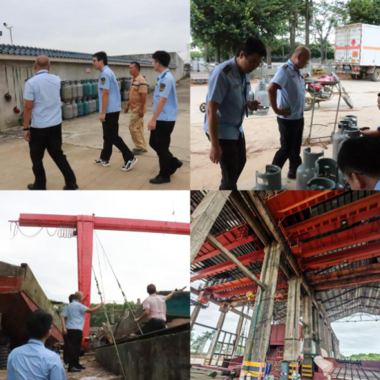 二、緊盯特種設(shè)備,嚴(yán)守安全底線。檢查組以轄區(qū)內(nèi)大型起重機(jī)械、危險化學(xué)品儲罐為重點(diǎn),深入轄區(qū)燃?xì)庹尽⒋瑥S、糖廠等特種設(shè)備使用單位,聯(lián)合企業(yè)安全管理員排查燃?xì)夤艿烂芊庑阅芘c充裝設(shè)備狀態(tài),防止燃?xì)庑孤缓瞬槁短炱鹬貦C(jī)械加固情況,要求起重機(jī)械立即停機(jī),收回吊臂,撤離工作人員,加固設(shè)施設(shè)備,筑牢特種設(shè)備安全屏障。
