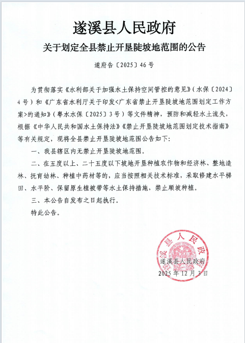關(guān)于劃定全縣禁止開墾陡坡地范圍的公告