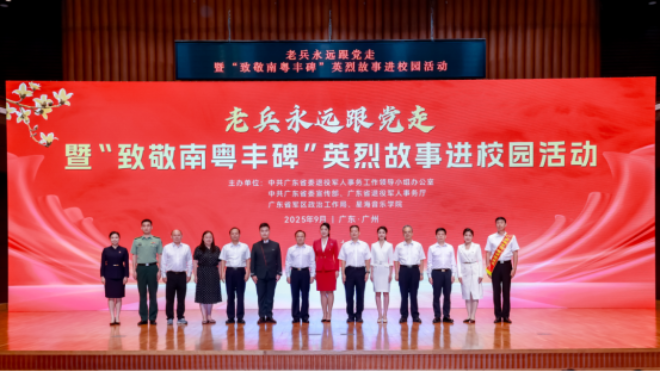 今年是中國人民抗日戰(zhàn)爭暨世界反法西斯戰(zhàn)爭勝利80周年、中國人民志愿軍抗美援朝出國作戰(zhàn)75周年。9月10日,由中共廣東省委退役軍人事務(wù)工作領(lǐng)導小組辦公室、中共廣東省委宣傳部、廣東省退役軍人事務(wù)廳、廣東省軍區(qū)政治工作局、星海音樂學院等單位共同主辦的“老兵永遠跟黨走”暨“致敬南粵豐碑”英烈故事進校園活動在星海音樂學院成功舉辦。