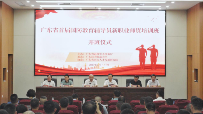 9月22日,廣東省退役軍人事務(wù)廳舉辦的廣東省首屆國防教育輔導(dǎo)員新職業(yè)師資培訓(xùn)班在廣東技術(shù)師范大學(xué)開班,來自廣東、湖北、浙江、海南、云南、內(nèi)蒙古“五省一區(qū)”從事國防教育輔導(dǎo)事業(yè)的131名教師和退役軍人參訓(xùn),省退役軍人事務(wù)廳黨組成員、副廳長董仲琪,廣東技術(shù)師范大學(xué)黨委常委、副校長鄧文新參加開班儀式。