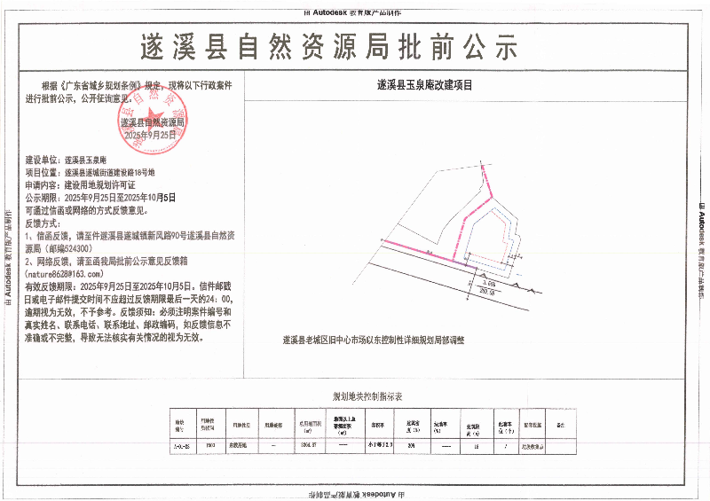 遂溪縣玉泉庵改建項(xiàng)目建設(shè)用地規(guī)劃許可證批前公示