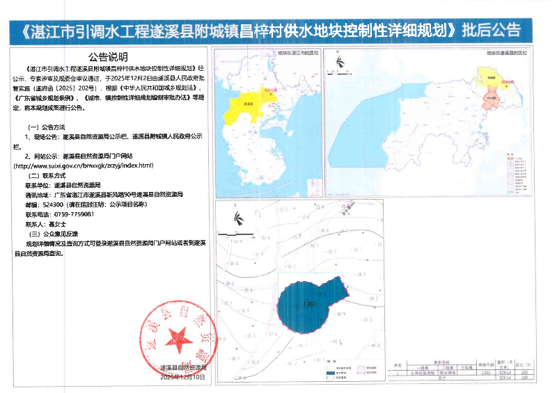 《湛江市引調(diào)水工程遂溪縣附城鎮(zhèn)昌梓村供水地塊控制性詳細(xì)規(guī)劃》批后公告