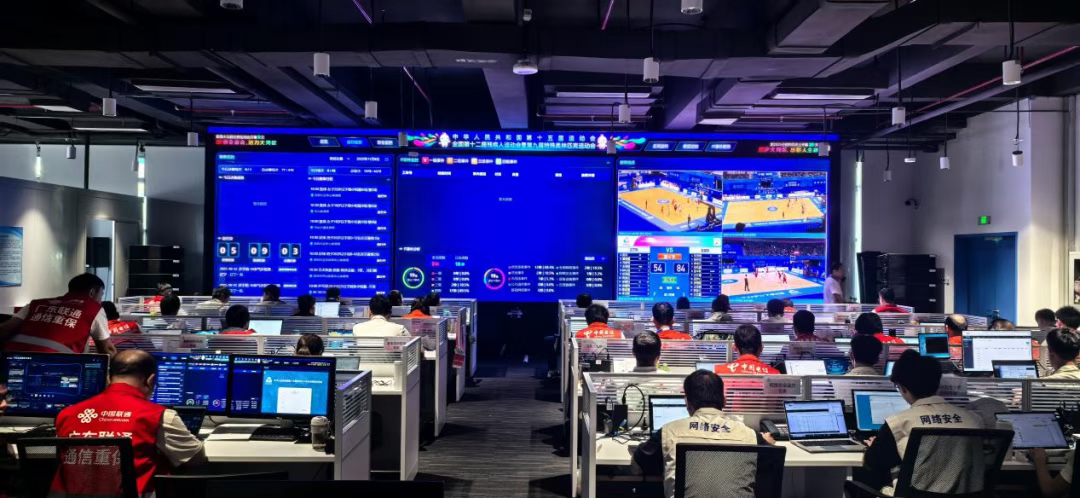 精彩背后,是數(shù)千名信息化團(tuán)隊保障人員的無聲堅守。 在組委會的指導(dǎo)下,省執(zhí)委會信息化專班以加強(qiáng)頂層設(shè)計為“指揮棒”,繪制了一張精準(zhǔn)作戰(zhàn)的“分工圖”:省執(zhí)委會統(tǒng)領(lǐng)信息化建設(shè)全局,一體謀劃推進(jìn)各項數(shù)字服務(wù)保障工作落實落細(xì);電信公司主攻云服務(wù)與衛(wèi)星通信保障,筑起高速通信網(wǎng)絡(luò)的基石;移動公司承建競賽專網(wǎng)及跨境數(shù)據(jù)專線,為賽事的信息傳遞開辟了一條暢通無阻的通道;聯(lián)通公司搭建賽事指揮調(diào)度平臺,讓賽事的指揮調(diào)度更加高效有序;數(shù)字廣東網(wǎng)絡(luò)建設(shè)有限公司承建數(shù)據(jù)資源共享平臺、志愿者管理系統(tǒng)及接待管理系統(tǒng),讓數(shù)據(jù)流得通暢、流得安全。各方攜手并肩、協(xié)同作戰(zhàn),不僅夯實了賽事信息化的技術(shù)底座,更筑起一道堅不可摧的數(shù)字服務(wù)屏障。 在網(wǎng)絡(luò)運(yùn)行方面,形成網(wǎng)絡(luò)保障、賽事運(yùn)行等分隊,通過信息技術(shù)運(yùn)行中心(TOC)實時監(jiān)控網(wǎng)絡(luò)運(yùn)行狀態(tài)、系統(tǒng)負(fù)載狀況、關(guān)鍵指標(biāo)變化,形成“人守、物備、網(wǎng)控、數(shù)驅(qū)”聯(lián)動保障格局,對突發(fā)故障、網(wǎng)絡(luò)瓶頸、設(shè)備告警等情況實現(xiàn)秒級預(yù)警,確保賽事運(yùn)行信息化系統(tǒng)全天候穩(wěn)定可靠,在“零卡頓”“零中斷”服務(wù)保障中傳遞科技的溫度。 在網(wǎng)絡(luò)安全方面,網(wǎng)絡(luò)安全團(tuán)隊提前部署,對21個業(yè)務(wù)系統(tǒng)互聯(lián)網(wǎng)暴露面進(jìn)行排查和策略再收緊,加強(qiáng)對賽事專網(wǎng)、賽事互聯(lián)網(wǎng)、數(shù)據(jù)中心的實時監(jiān)測。設(shè)置三級保障團(tuán)隊,形成“資深網(wǎng)絡(luò)安全專家+遠(yuǎn)程值班保障二線專家+產(chǎn)品研發(fā)技術(shù)專家”的梯次網(wǎng)絡(luò)安全保障團(tuán)隊,筑牢網(wǎng)絡(luò)安全的“銅墻鐵壁”。開幕式當(dāng)天,各業(yè)務(wù)系統(tǒng)運(yùn)行平穩(wěn),未發(fā)生網(wǎng)絡(luò)安全事件,圓滿完成“零事故”網(wǎng)絡(luò)安全保障目標(biāo)。