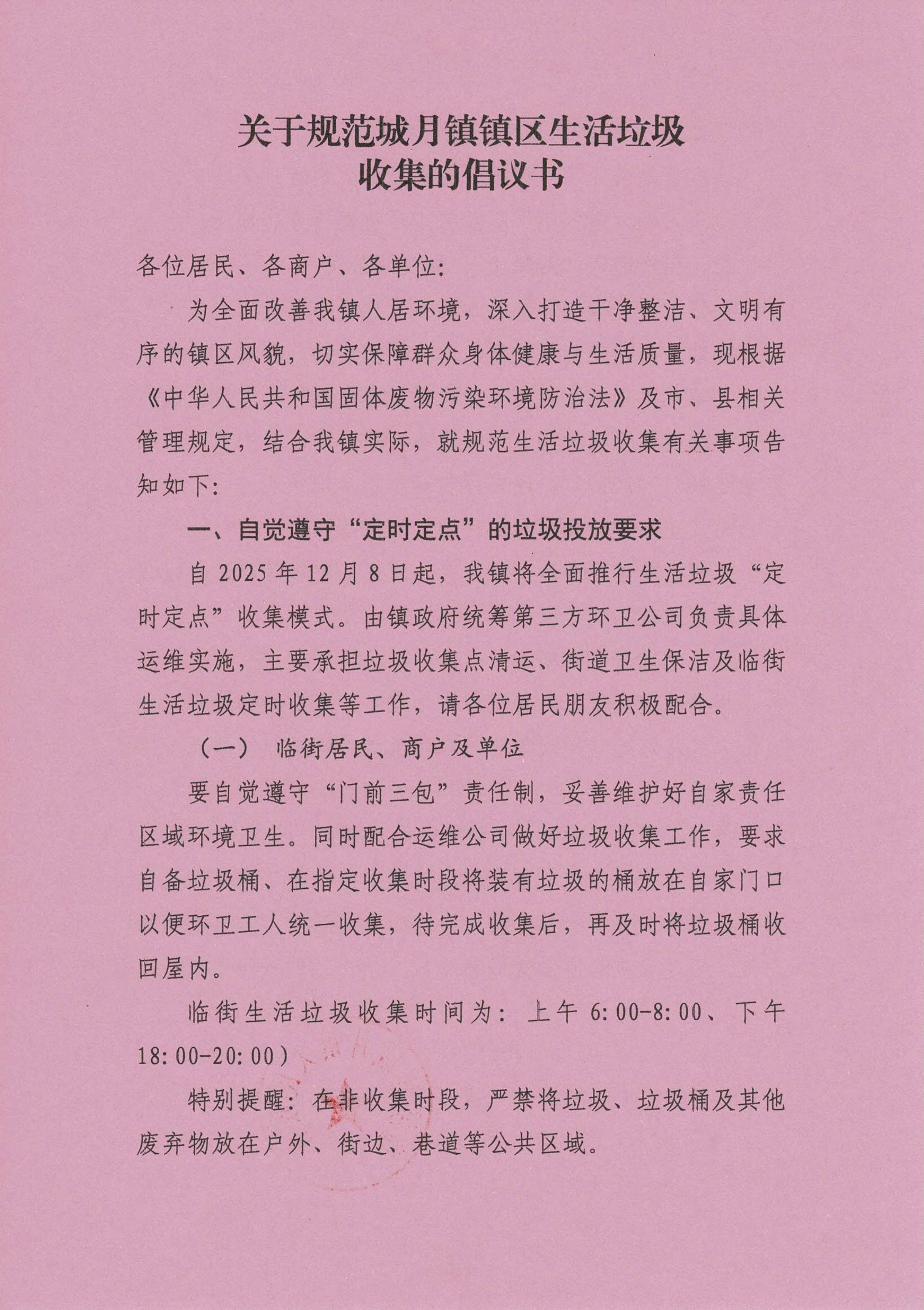 關(guān)于規(guī)范城月鎮(zhèn)鎮(zhèn)區(qū)生活垃圾收集的倡議書