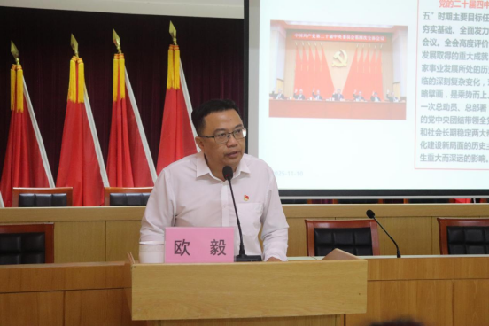此次宣講會特別邀請湛江市委理論宣講員、市委黨??妥淌跉W毅同志作專題輔導(dǎo)報(bào)告。歐毅教授作為湛江市理論宣講和政法領(lǐng)域的資深專家,兼具深厚的理論素養(yǎng)與豐富的實(shí)踐經(jīng)驗(yàn)。宣講過程中,歐教授以宏闊的視野、嚴(yán)密的邏輯和生動的語言,對黨的二十屆四中全會精神進(jìn)行了全面系統(tǒng)、深入透徹的解讀。他深刻闡釋了全會召開的時(shí)代背景、核心要義與深遠(yuǎn)影響,詳細(xì)解析了“十五五”時(shí)期我國經(jīng)濟(jì)社會發(fā)展的指導(dǎo)思想、目標(biāo)任務(wù)、重大舉措和戰(zhàn)略部署。同時(shí),歐教授還緊密結(jié)合習(xí)近平總書記視察廣東時(shí)發(fā)表的重要講話和作出的系列重要指示精神,引導(dǎo)大家深刻體悟習(xí)近平總書記對廣東發(fā)展的殷切期望和戰(zhàn)略指引,并就如何將中央大政方針與建新鎮(zhèn)發(fā)展實(shí)際相結(jié)合,找準(zhǔn)貫徹落實(shí)的切入點(diǎn)和著力點(diǎn),提出了具有建設(shè)性的見解。