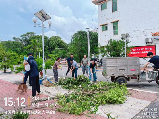 臺風(fēng)過境后,為盡快恢復(fù)平和與秩序,鎮(zhèn)黨委、政府第一時間進(jìn)行部署,迅速組織 35 支救援隊(duì)伍,統(tǒng)籌調(diào)配挖掘機(jī)、裝載機(jī)、清運(yùn)車等作業(yè)設(shè)備,以“先通后凈、全面覆蓋”為原則,對轄區(qū)內(nèi)主次干道、背街小巷等周邊重點(diǎn)區(qū)域開展集中清理行動。在清運(yùn)車難以駛?cè)氲莫M窄巷道,志愿者們帶著鐵鍬、掃帚、垃圾袋等工具,逐一清理墻角、綠化帶內(nèi)的雜物,并協(xié)助商鋪檢查廣告牌,對輕微傾斜的小型廣告牌,合力進(jìn)行手動加固,對存在嚴(yán)重安全隱患的廣告牌,則及時標(biāo)記并聯(lián)系專業(yè)人員處理,全力守護(hù)行人腳下的安全。鎮(zhèn)黨委書記親赴電力搶修現(xiàn)場,慰問堅(jiān)守一線的供電維修人員,為他們送去飲用水等慰問品,洪文澤書記指出:電力是群眾生活保障的關(guān)鍵,要在確保安全的前提下,爭分奪秒推進(jìn)搶修,盡快恢復(fù)全鎮(zhèn)供電,讓群眾能點(diǎn)亮家里的燈、做好團(tuán)圓飯,安穩(wěn)過中秋。