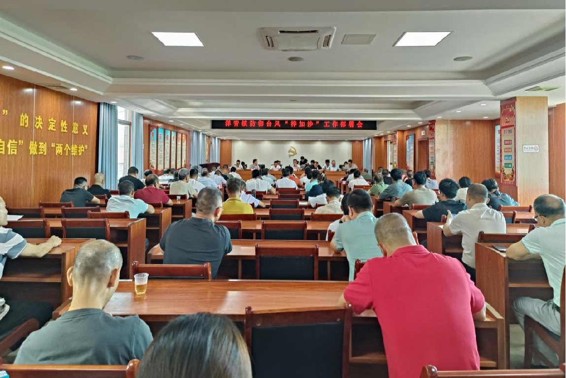 圖為洋青鎮(zhèn)召開防御臺風(fēng)“樺加沙”工作部署會
