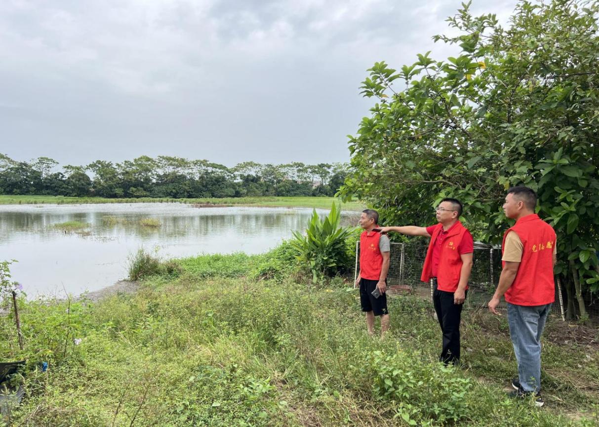 圖為洋青鎮(zhèn)黨委書記陳榮慶到后湖水庫等重點區(qū)域開展巡查工作