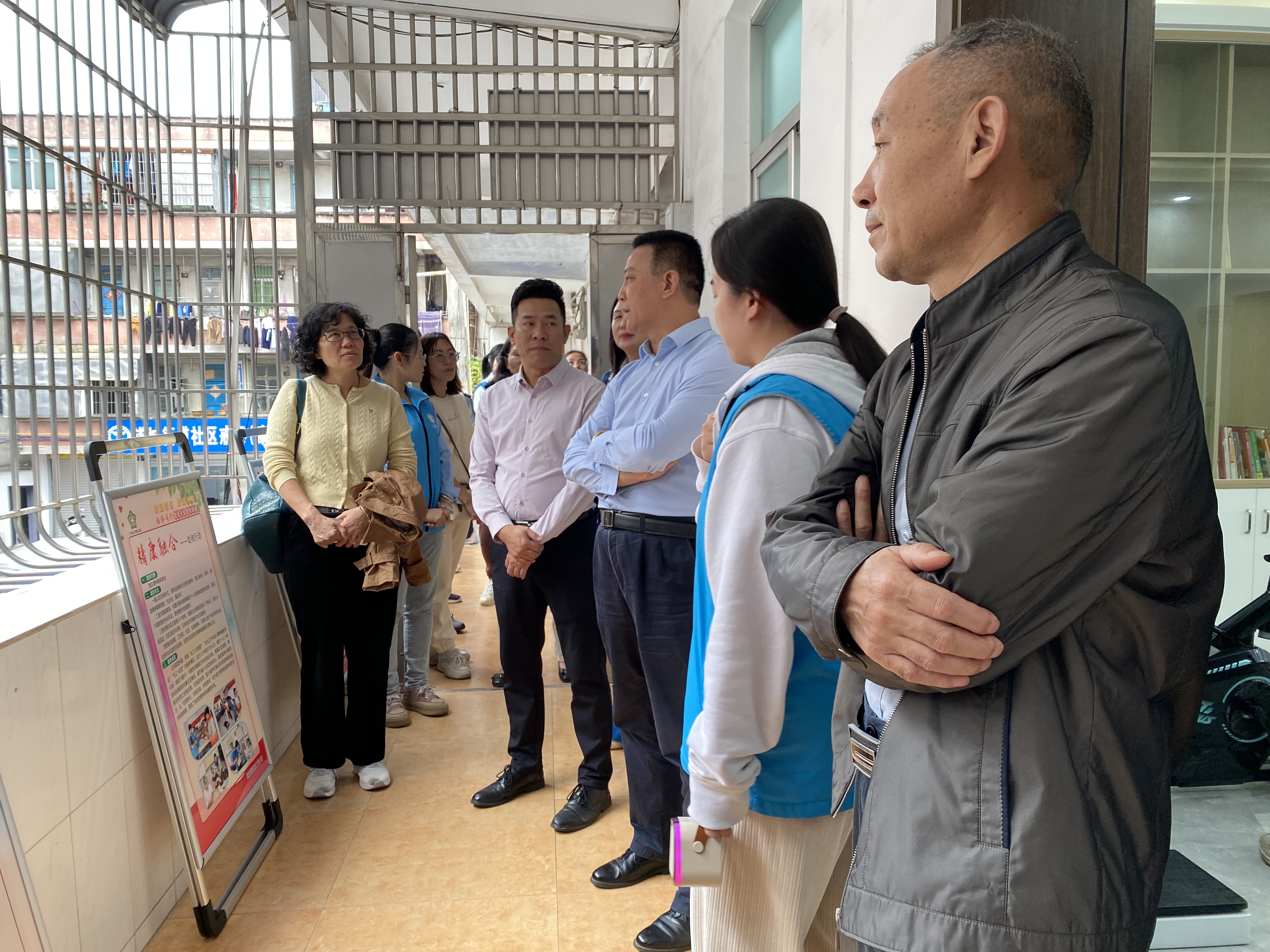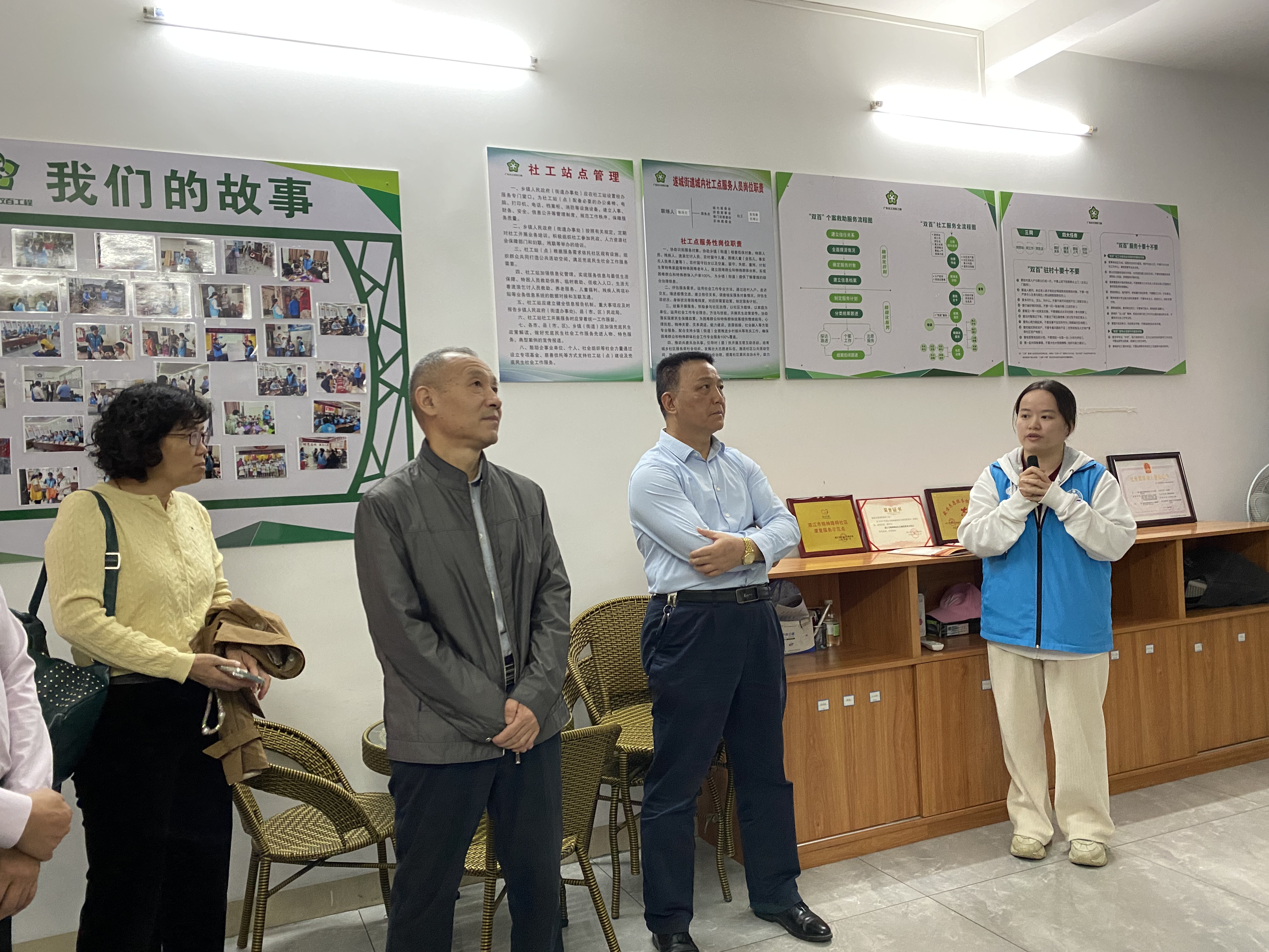 陳觀光一行人首先來到遂城街道社工站城內(nèi)社工點(diǎn)進(jìn)行參觀交流。社工點(diǎn)聯(lián)絡(luò)員陳詩文詳細(xì)介紹了站點(diǎn)建設(shè)、服務(wù)開展及社區(qū)融入情況,展示了遂城街道在基層社工服務(wù)陣地標(biāo)準(zhǔn)化、服務(wù)項(xiàng)目化方面的探索與實(shí)踐。
