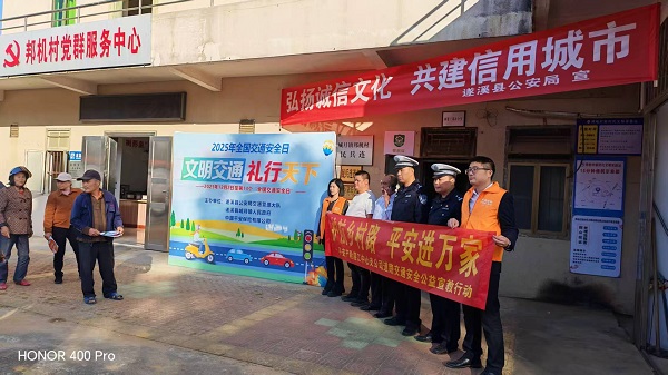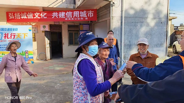 為筑牢鄉(xiāng)村誠(chéng)信建設(shè)根基,推動(dòng)信用城市建設(shè)向基層延伸,11月28日,遂溪縣公安局組織民警深入城月鎮(zhèn)邦機(jī)村委會(huì)開展以“弘揚(yáng)誠(chéng)信文化 共建信用城市”為主題的宣傳活動(dòng),以接地氣的形式將誠(chéng)信知識(shí)與法治保障送到村民身邊,贏得廣泛好評(píng)。