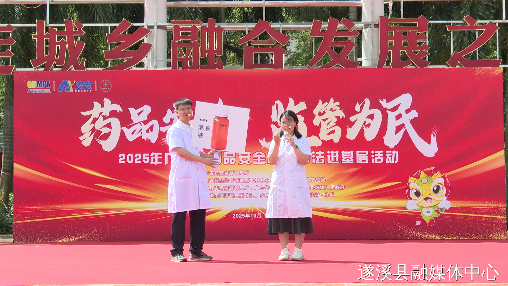 10月14日上午,由廣東省藥品監(jiān)督管理局主辦,廣東省藥品監(jiān)督管理局事務(wù)中心、湛江市市場監(jiān)督管理局承辦的廣東省2025年藥品安全科普普法進(jìn)基層活動在遂溪縣北坡鎮(zhèn)舉行。