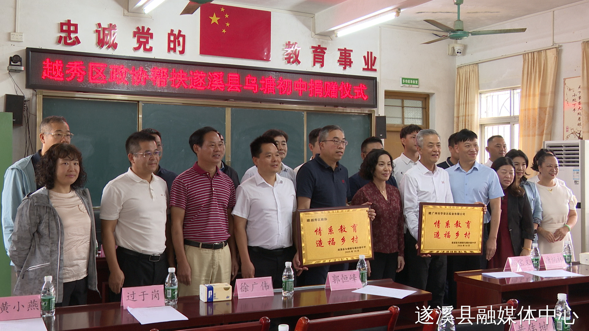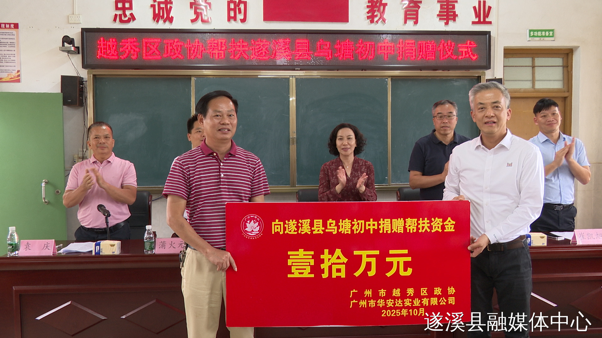 在烏塘中學(xué),調(diào)研團(tuán)深入察看校園教學(xué)設(shè)施,認(rèn)真聽取學(xué)校負(fù)責(zé)人關(guān)于辦學(xué)情況和發(fā)展需求的匯報(bào)。隨后向?qū)W校捐贈(zèng)幫扶資金10萬元用于學(xué)校圍墻修繕,全力保障校園安全。烏塘中學(xué)向捐贈(zèng)企業(yè)及越秀區(qū)政協(xié)回贈(zèng)感謝牌匾。