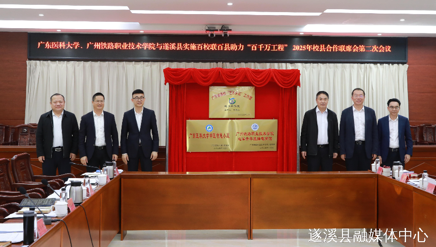 12月18日下午,廣東醫(yī)科大學(xué)、廣州鐵路職業(yè)技術(shù)學(xué)院與遂溪縣實施百校聯(lián)百縣助力“百千萬工程”2025 年??h合作聯(lián)席會第二次會議召開,總結(jié)??h結(jié)對共建階段性成果,深入謀劃下一步合作方向,為推動校縣合作在新起點上實現(xiàn)新突破,為遂溪“百千萬工程”落地見效注入更加強勁的動力。遂溪縣委書記駱華慶出席會議并講話,遂溪縣委副書記、縣長張洋主持會議。