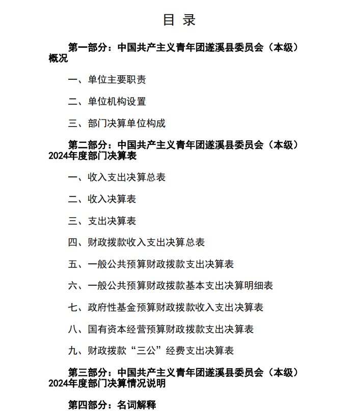 2024年度中國共產(chǎn)主義青年團(tuán)遂溪縣委員會(本級)部門決算 | | 作者: | 來源:中國共產(chǎn)主義青年團(tuán)遂溪縣委員會 | 時間:2025-09-16 15:05:25 點擊數(shù):- 2024年度中國共產(chǎn)主義青年團(tuán)遂溪縣委員會(本級)部門決算.pdf 【打印正文】