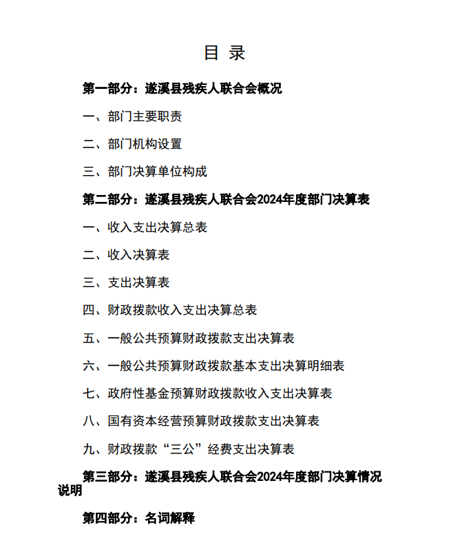 2024年度遂溪縣殘疾人聯(lián)合會部門決算 | | 作者: | 來源:遂溪縣殘疾人聯(lián)合會 | 時(shí)間:2025-09-16 15:53:38 點(diǎn)擊數(shù):- 2024年度遂溪縣殘疾人聯(lián)合會部門決算.pdf 【打印正文】