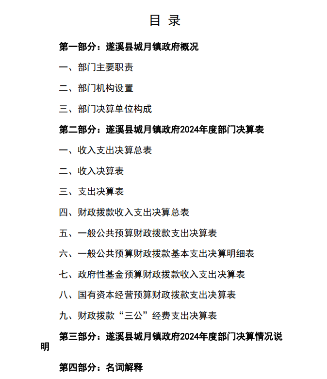 2024年度遂溪縣城月鎮(zhèn)政府部門決算 | | 作者: | 來源:遂溪縣城月鎮(zhèn)政府 | 時(shí)間:2025-09-16 16:29:47 點(diǎn)擊數(shù):- 2024年度遂溪縣城月鎮(zhèn)政府部門決算.pdf 【打印正文】
