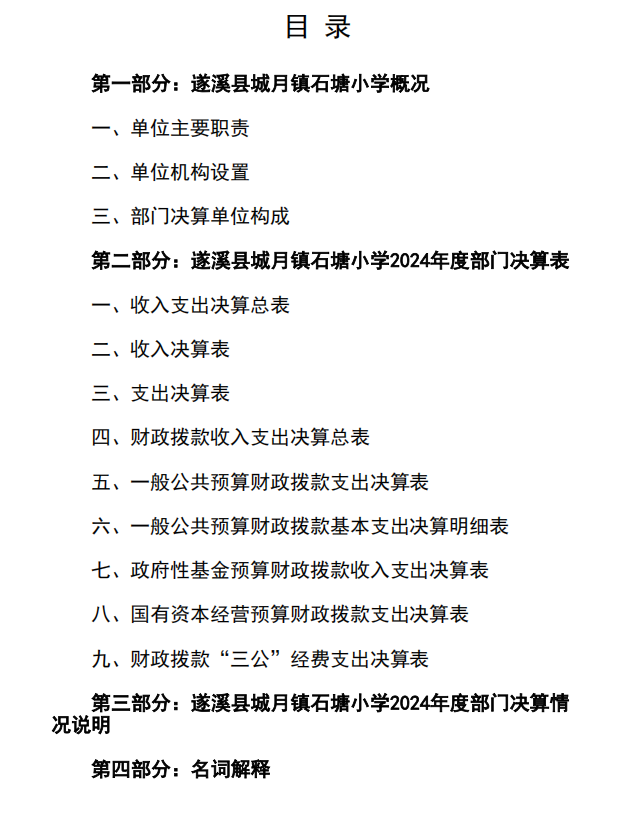 2024年度遂溪縣城月鎮(zhèn)石塘小學部門決算 | | 作者: | 來源:遂溪縣教育局 | 時間:2025-09-17 16:28:11 點擊數(shù):- 2024年度遂溪縣城月鎮(zhèn)石塘小學部門決算.pdf 【打印正文】