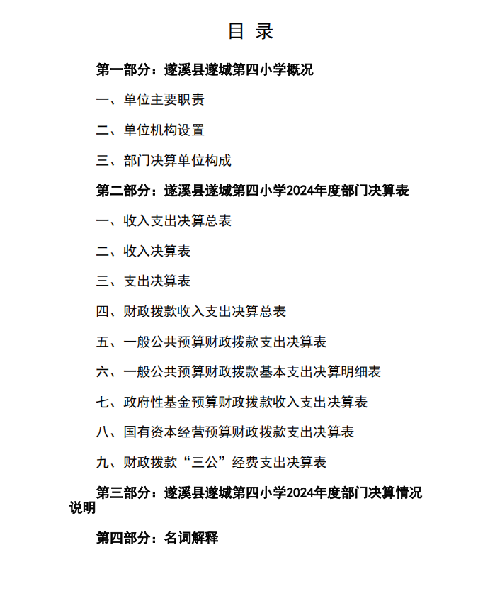 2024年度遂溪縣遂城第四小學部門決算 | | 作者: | 來源:遂溪縣教育局 | 時間:2025-09-18 09:52:07 點擊數(shù):- 2024年度遂溪縣遂城第四小學部門決算.pdf 【打印正文】