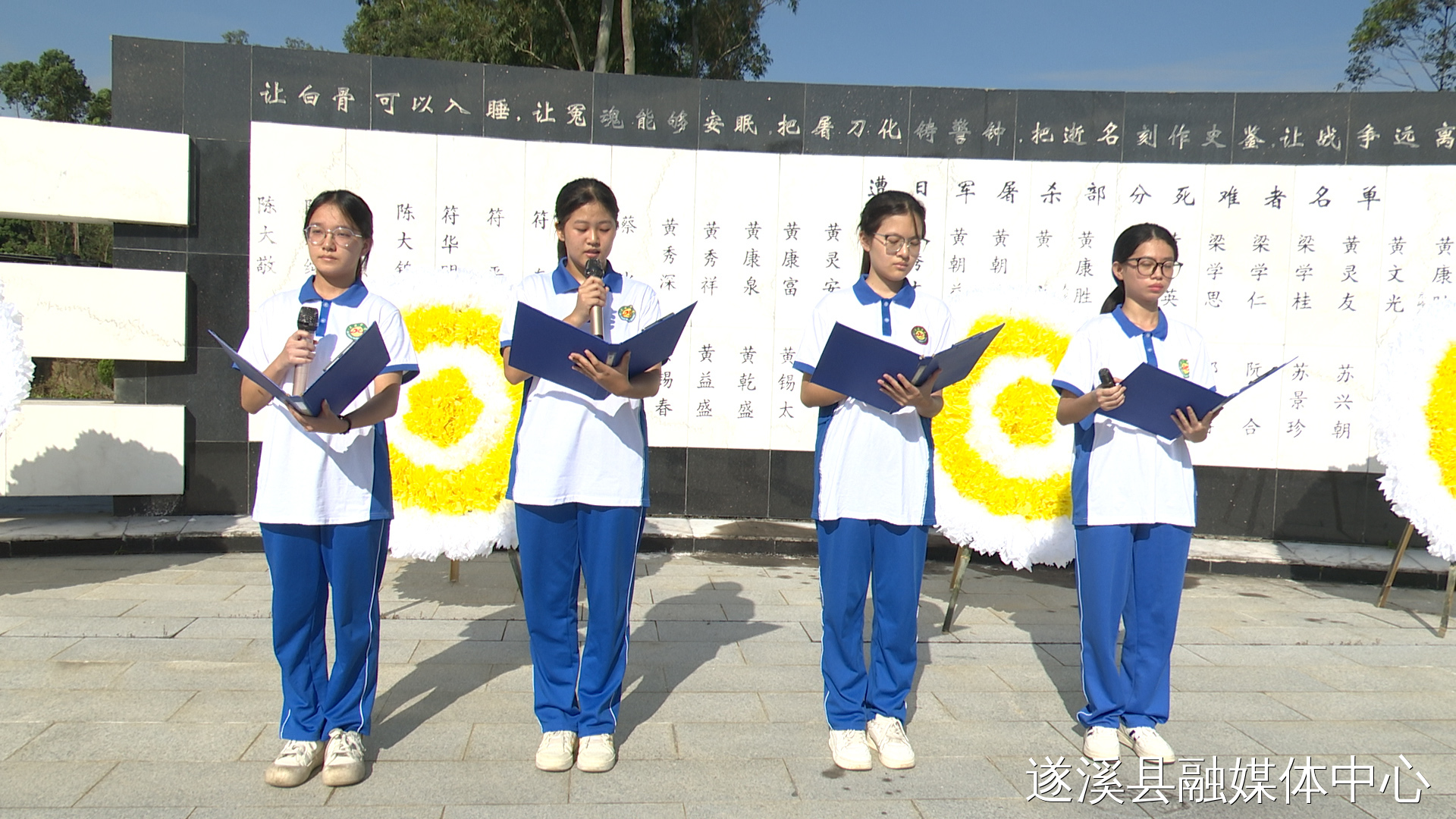 學(xué)生代表在紀(jì)念墻前朗誦《銘記歷史 開創(chuàng)明天》詩歌,銘記苦難歷史,勿忘國(guó)恥、警鐘長(zhǎng)鳴,抒發(fā)愛國(guó)熱情,堅(jiān)定聽黨話、跟黨走信念,展示爭(zhēng)當(dāng)有理想、有本領(lǐng)、有擔(dān)當(dāng)?shù)男聲r(shí)代青少年為實(shí)現(xiàn)民族復(fù)興的“中國(guó)夢(mèng)”而努力學(xué)習(xí)和奮斗的信心和斗志。