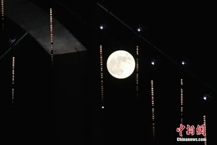 資料圖:中秋節(jié),圓月出現(xiàn)在福建福州上空。中新社記者 呂明 攝